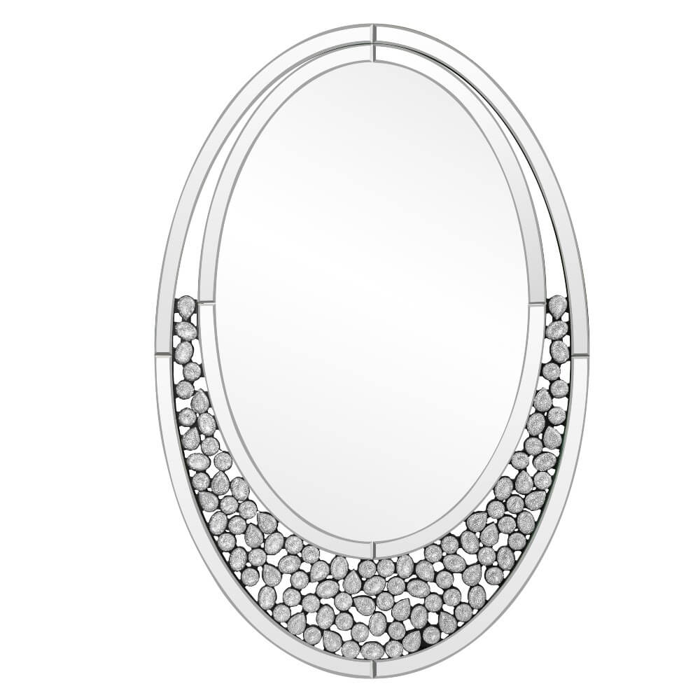 Diamond studded oval-shaped wall mirror