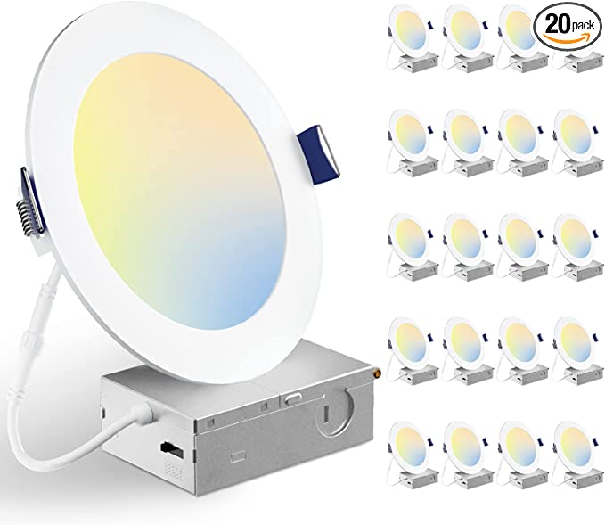 Recessed lighting is the most practical way to light up your kitchen. The modern fixtures will add brightness to your room without requiring any added maintenance. Check out the BBOUNDER 20 Pack 6 Inch 5CCT Ultra-Thin LED Recessed Ceiling Light.